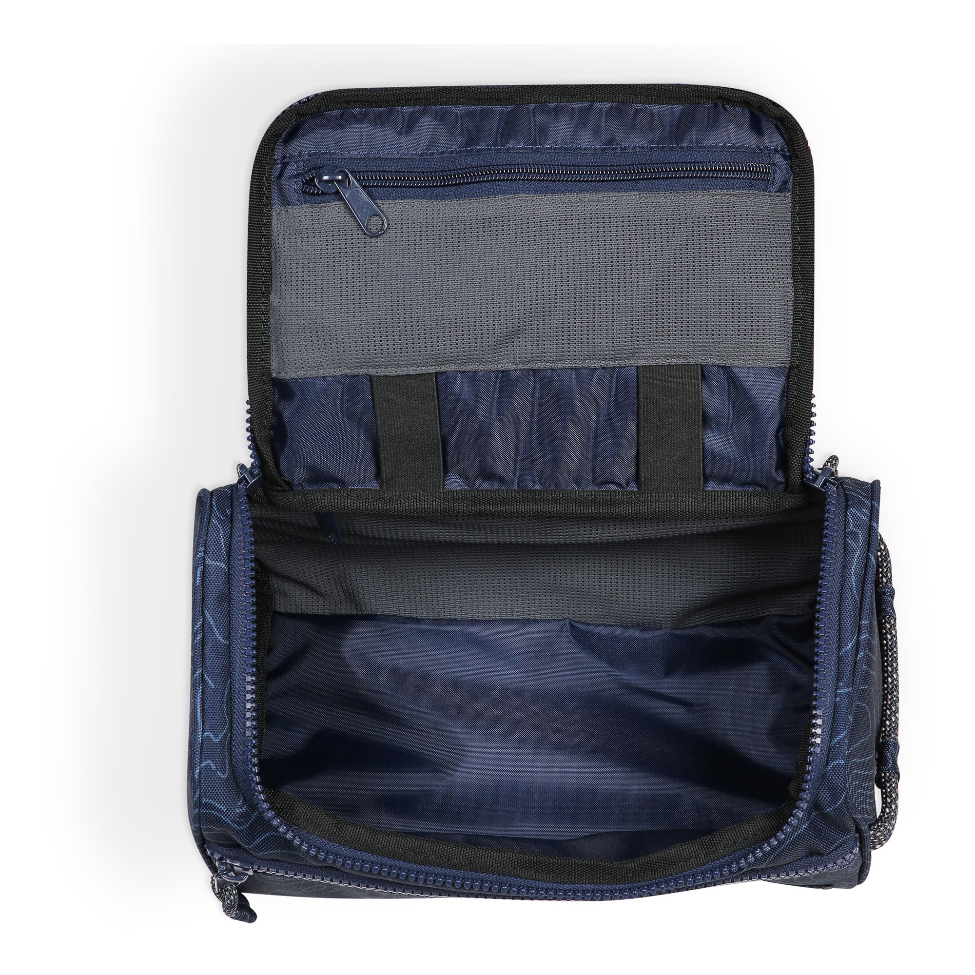 • Front zip pocket, two interior mesh zip pockets and elastic loop organizational straps