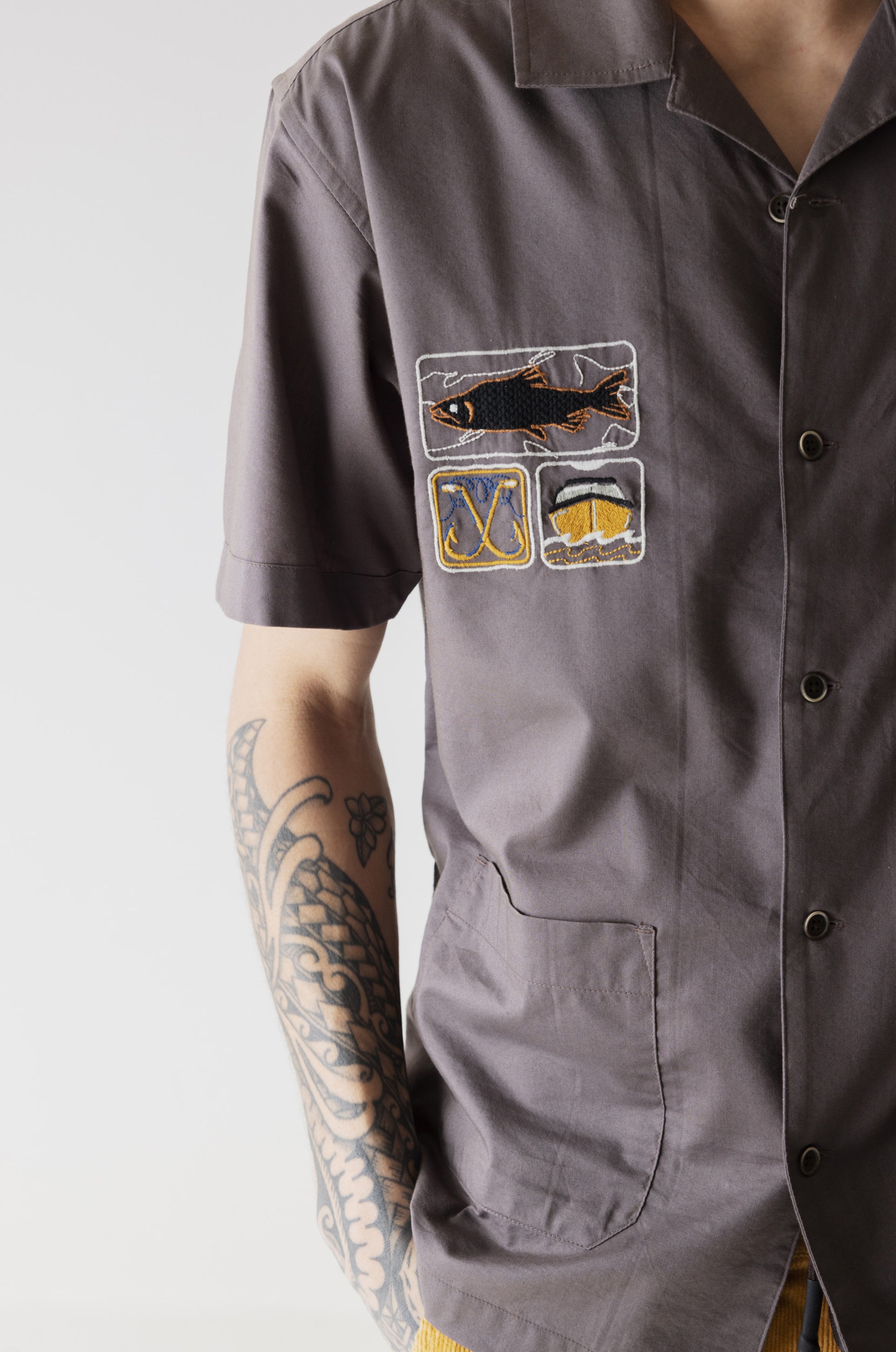 - Short sleeve custom embroidered button up shirt