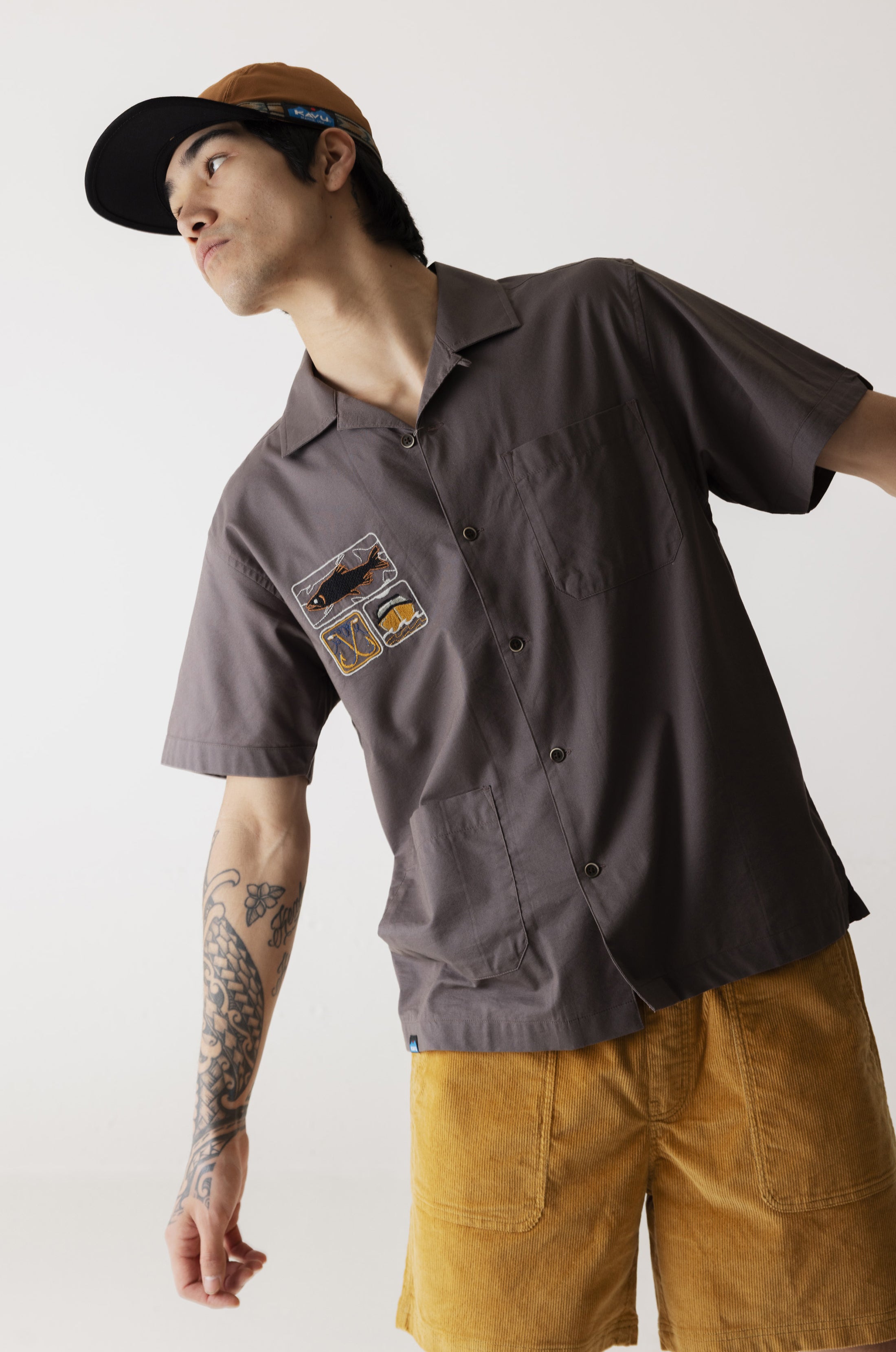 KAVU Bay Beach Short Sleeve Shirt (Dark Grey)