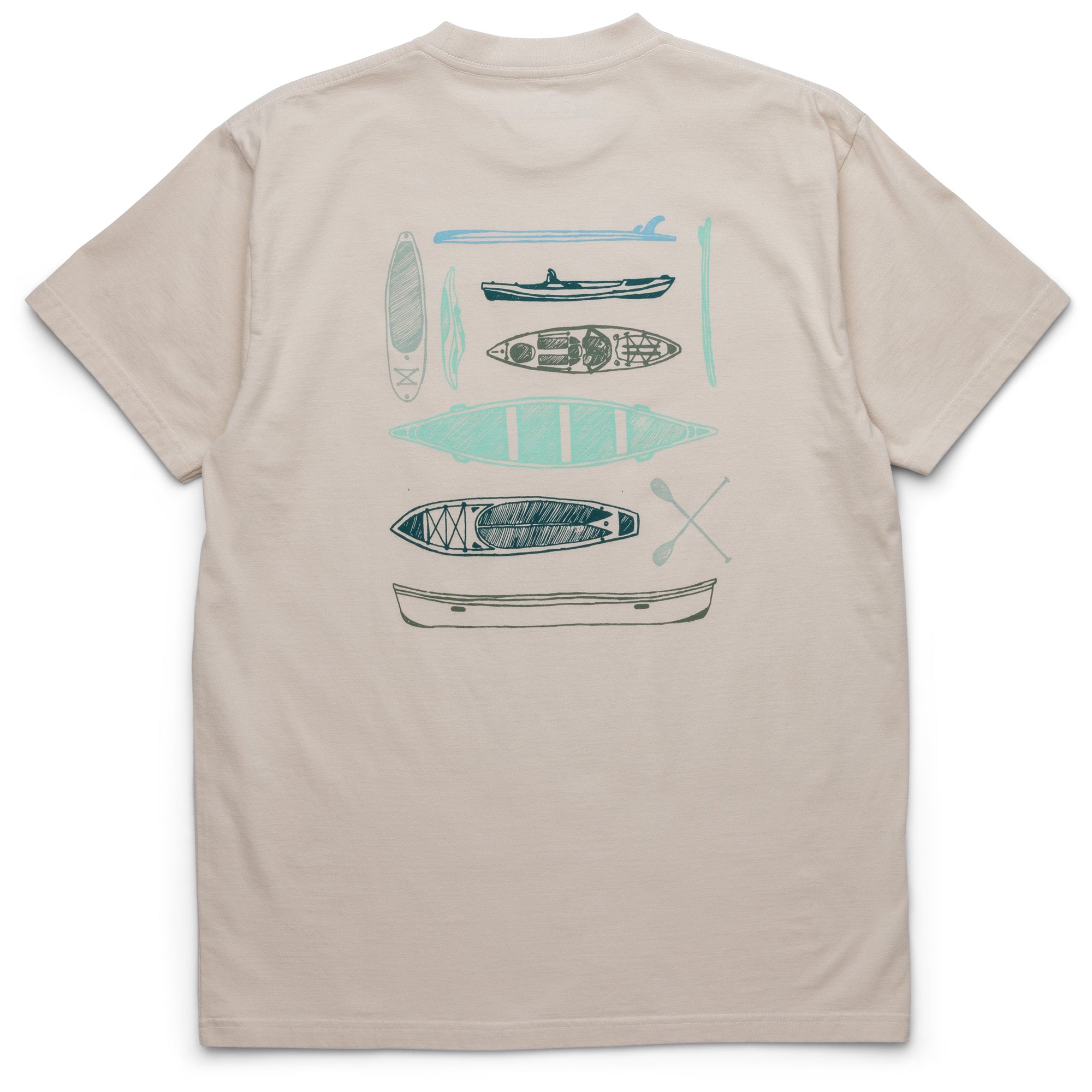KAVU days and quality time on the water go hand in hand. Our design crew created this 100% hypoallergenic certified organic tee to show some of our favorite H2O toys including a canoe, an open water SUP board, an ocean kayak, fresh water SUP board, and river kayak.
