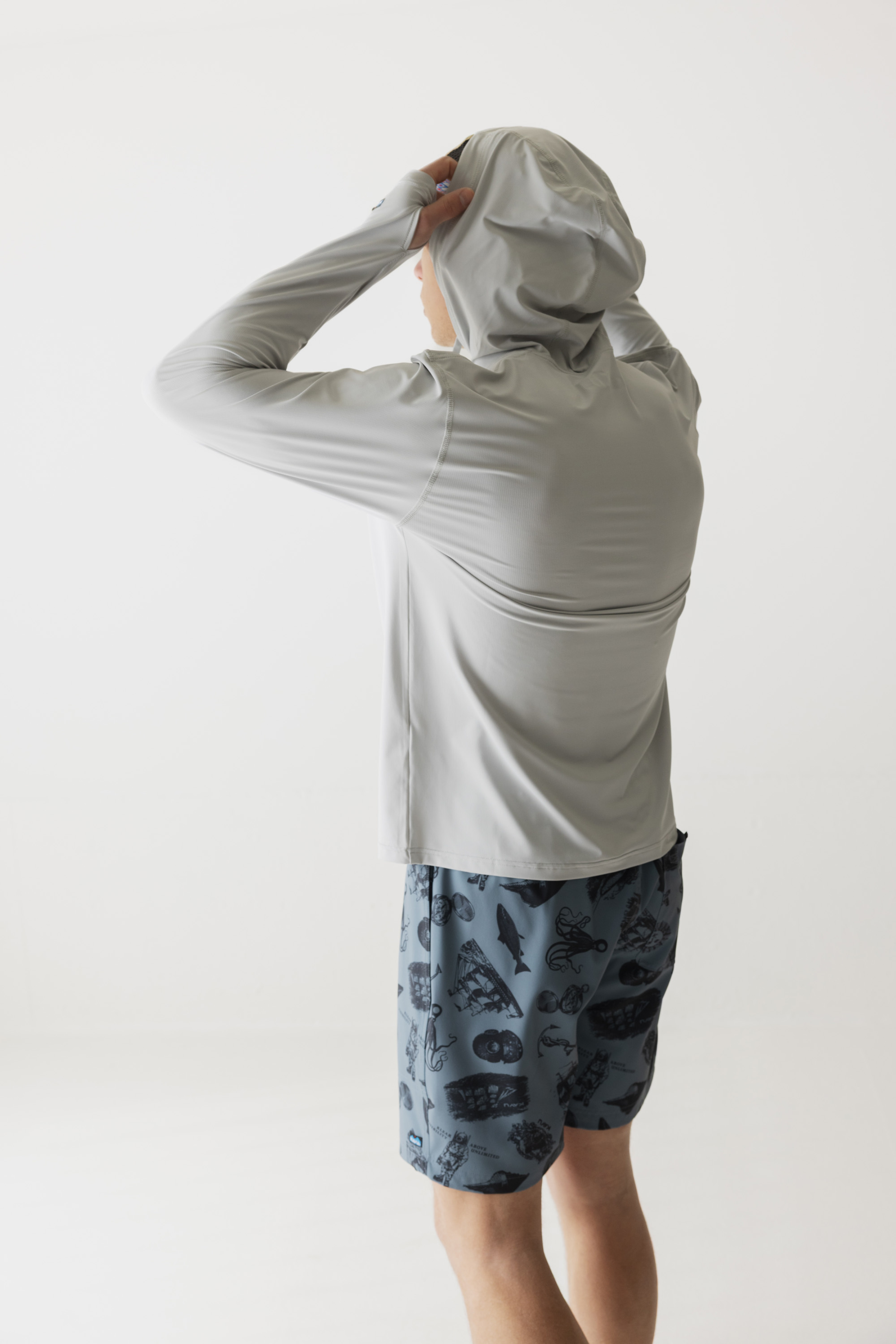 - Long sleeve hooded sun shirt with drawcord