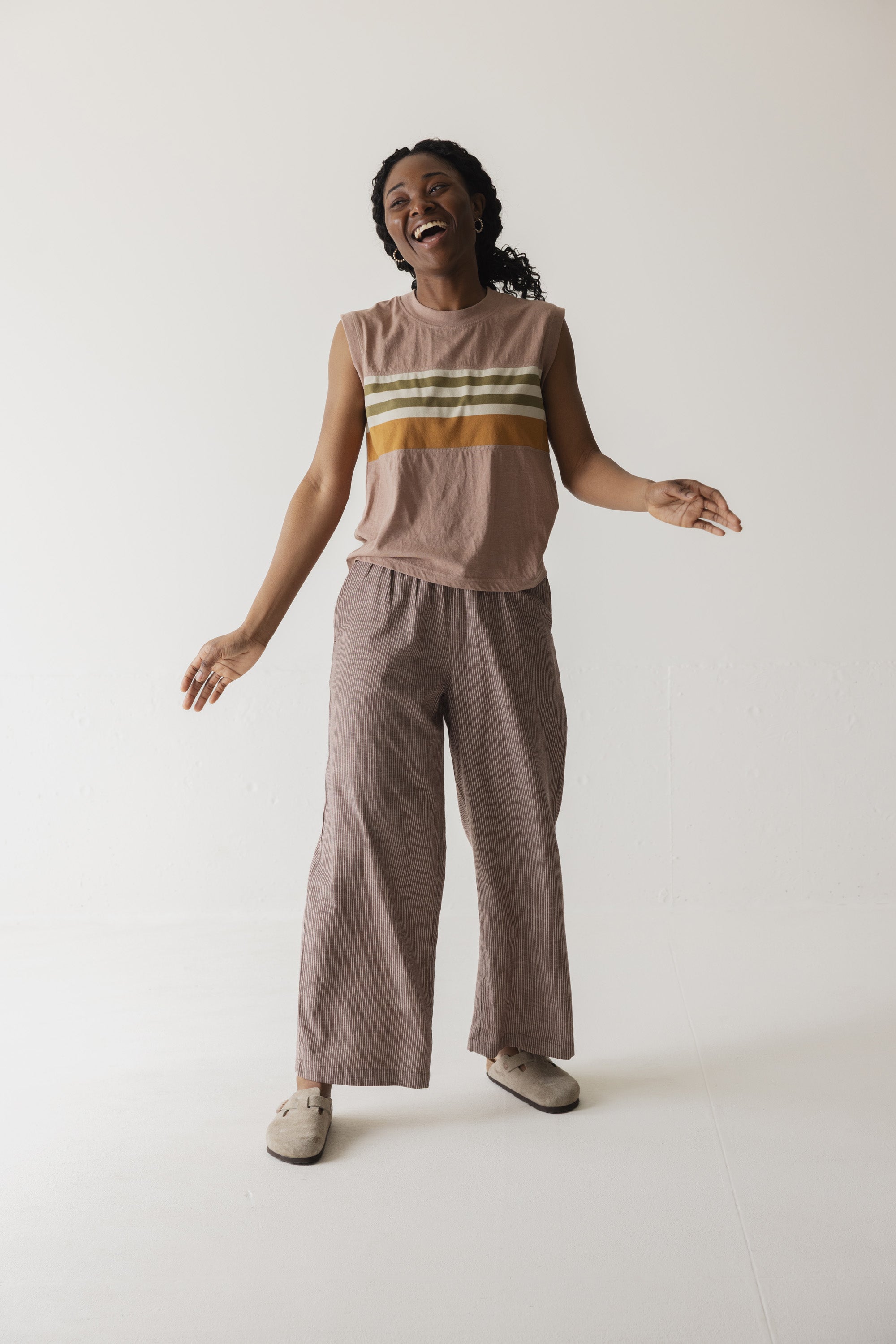 From yoga class to the crag, stay nice and cool in the Tuva tank. This muscle tank designed with fun, bright stripes is easy to wear and has become a KAVU fan favorite.