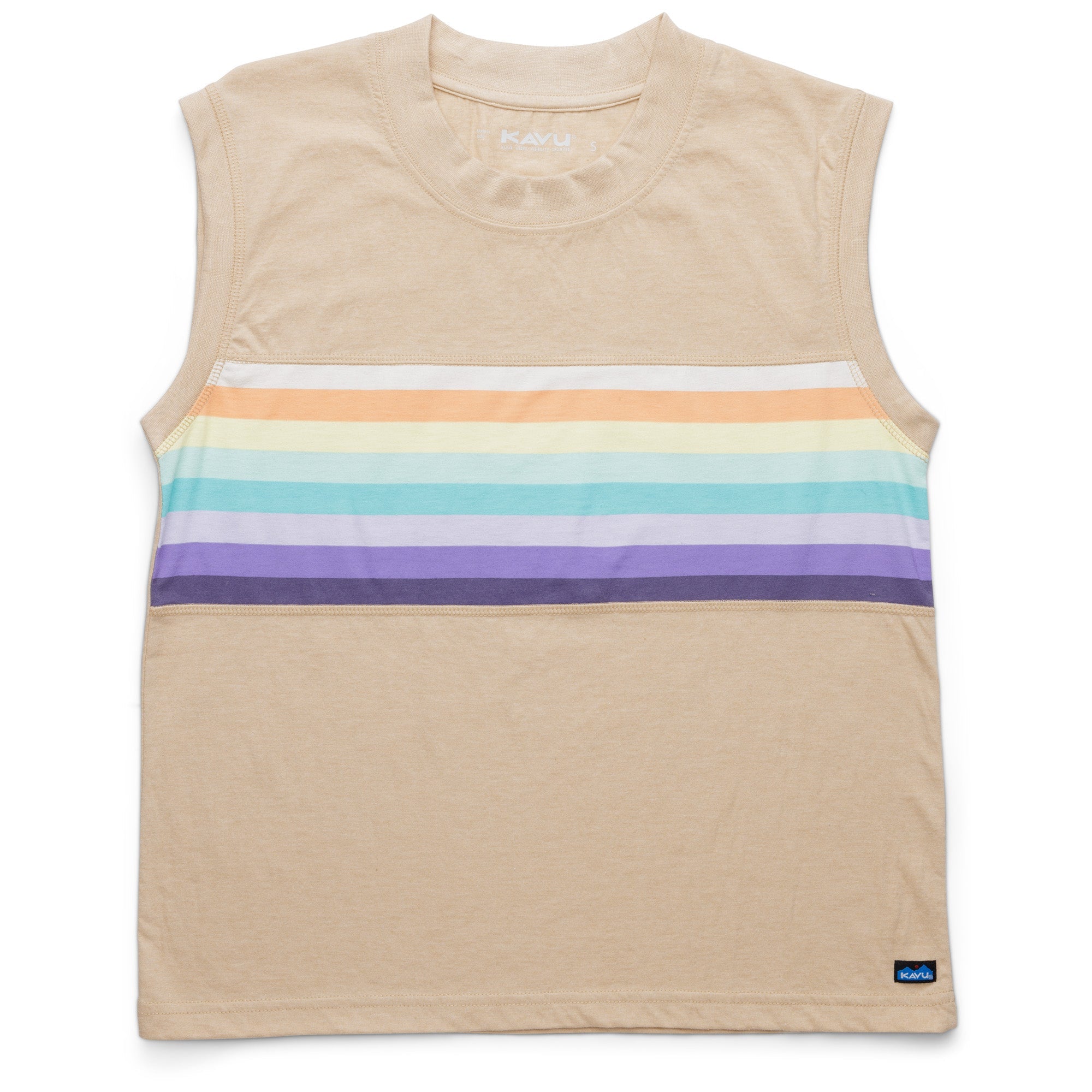 From yoga class to the crag, stay nice and cool in the Tuva tank. This muscle tank  designed with fun, bright stripes is easy to wear and has become a KAVU fan favorite.