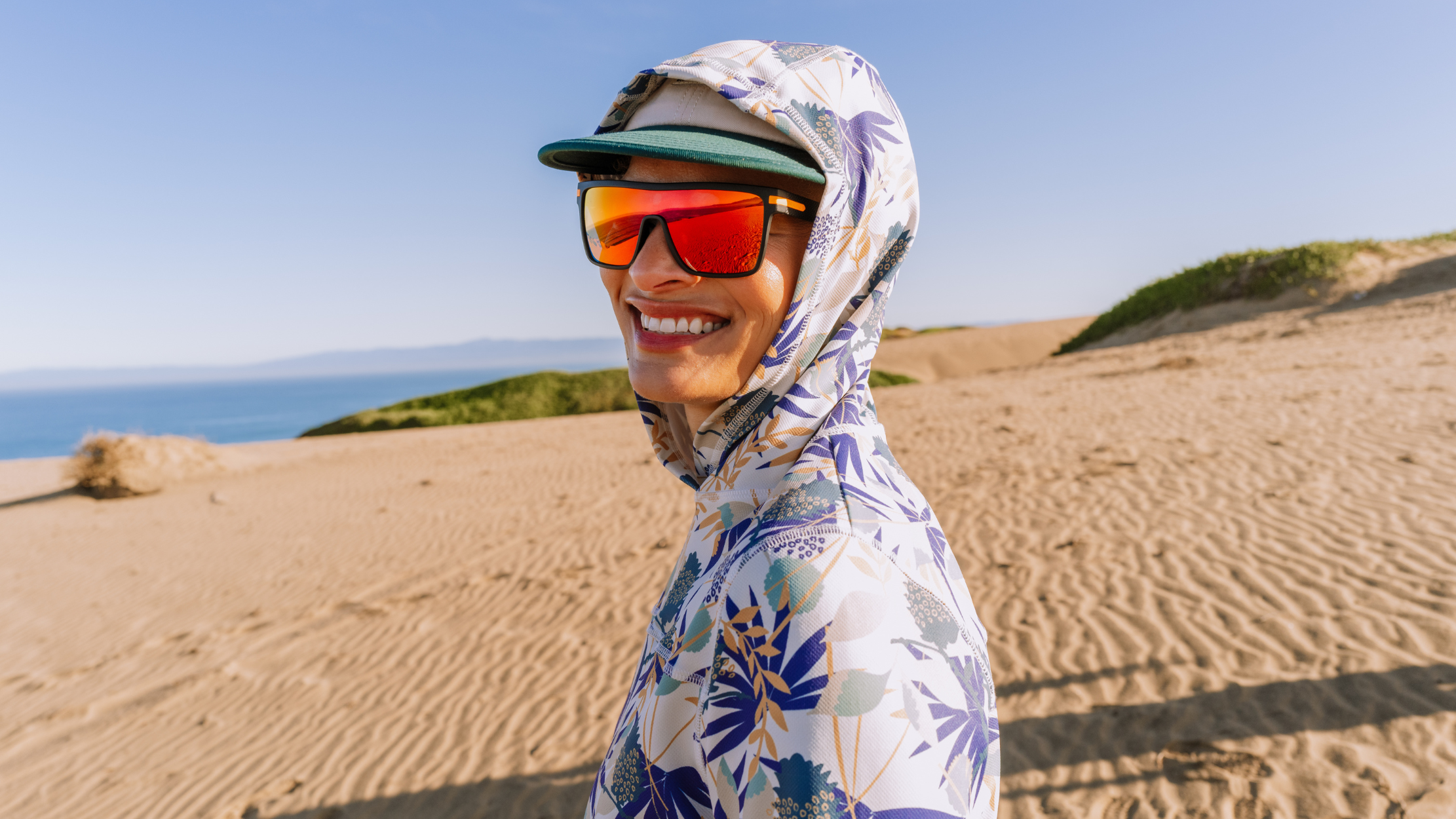 Semi-fitted, long sleeve hooded sun shirt