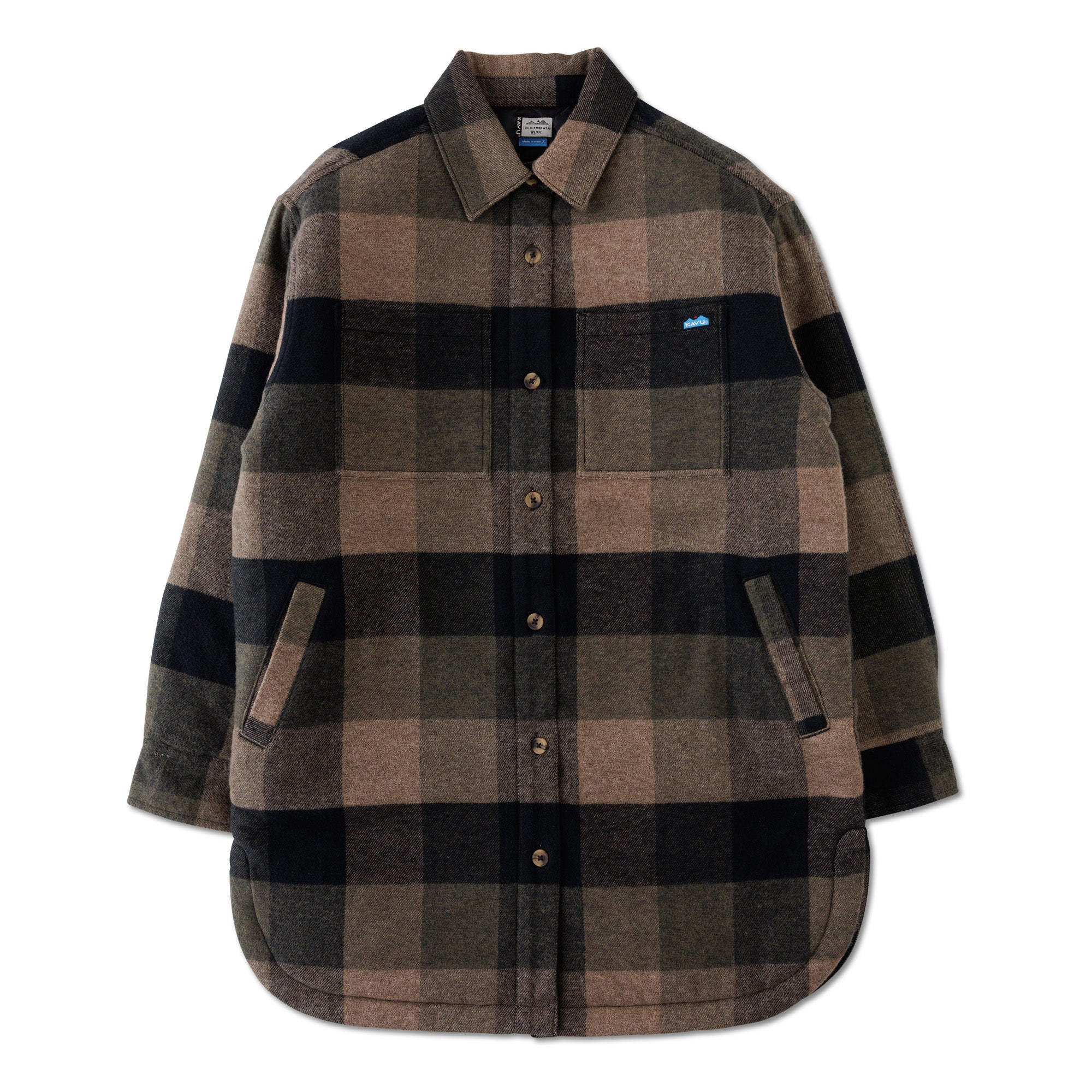 Taking your shacket game to another level with the Ivywood. Made of a soft cotton brushed flannel, with a polyester taffeta lining for easy on and off layering, this midi length shirt jacket is a must have for those chilly, windy days. Keep your body warm and your face smiling rocking the Ivywood on chilly day adventures.