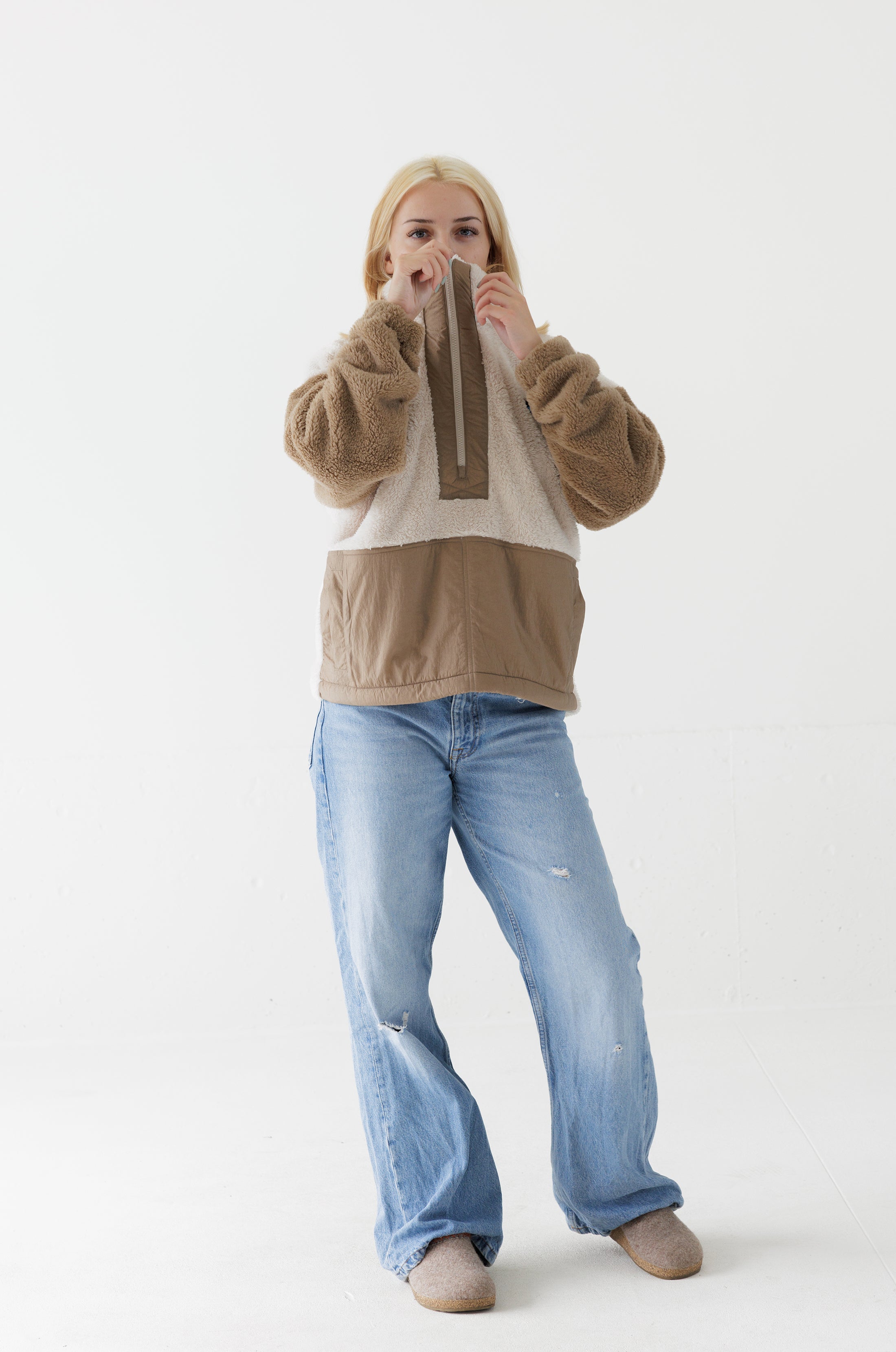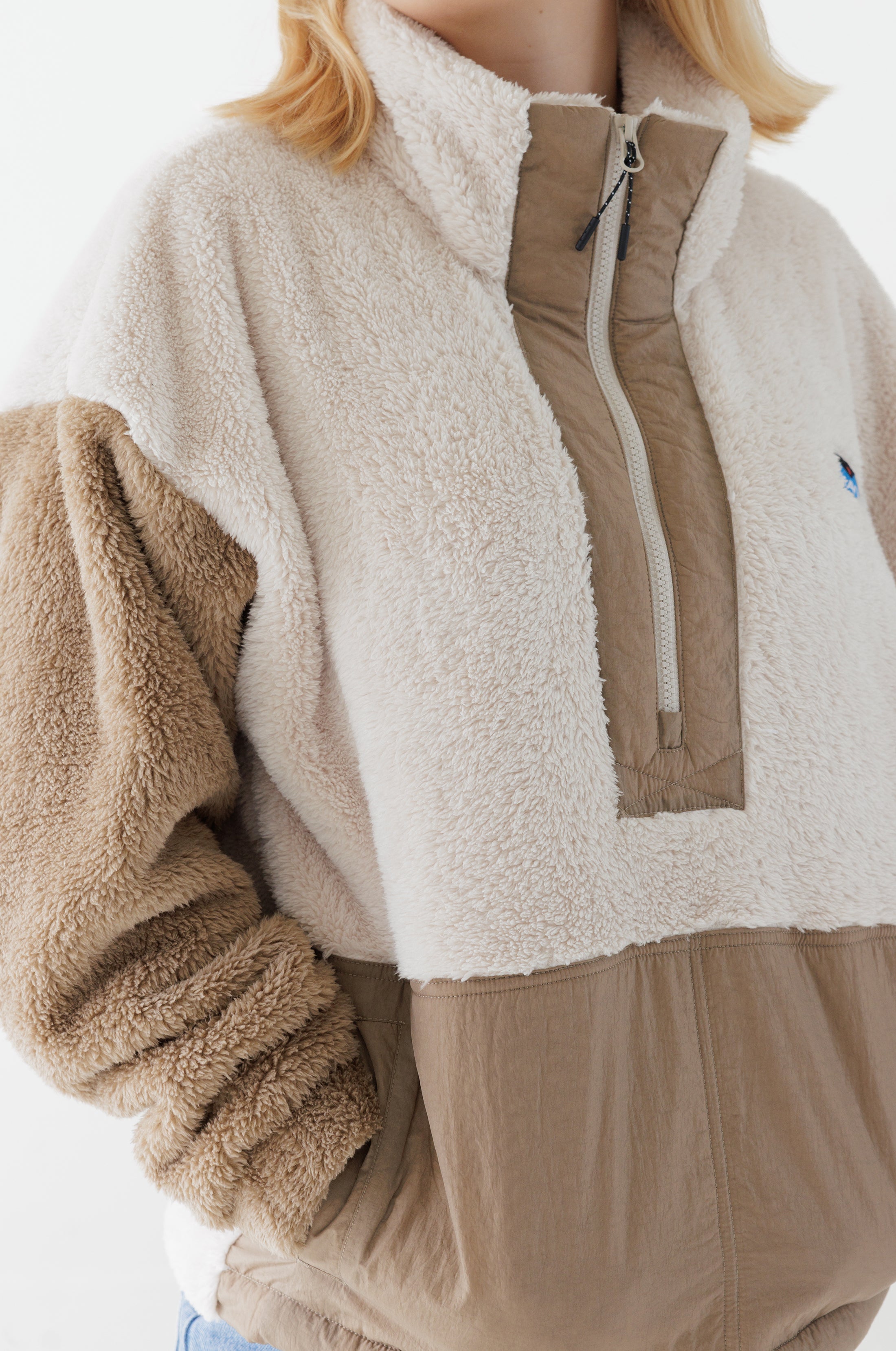 - Half zip mock neck fleece pullover